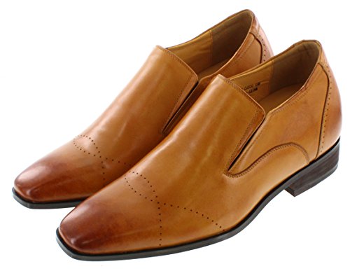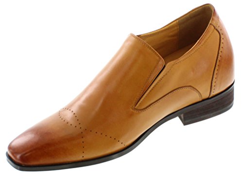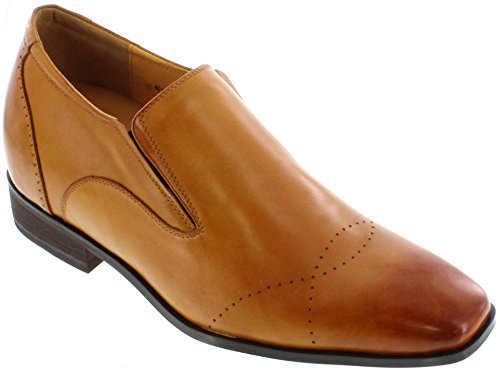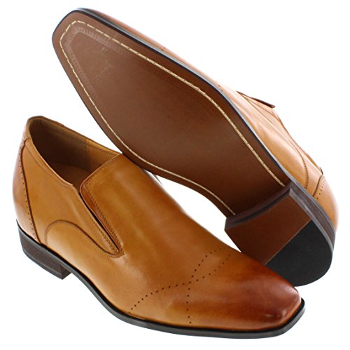 CALTO - G6506 - 3 Inches Taller - Height Increasing Elevator Shoes (Brown Leather Slip-on Premi...