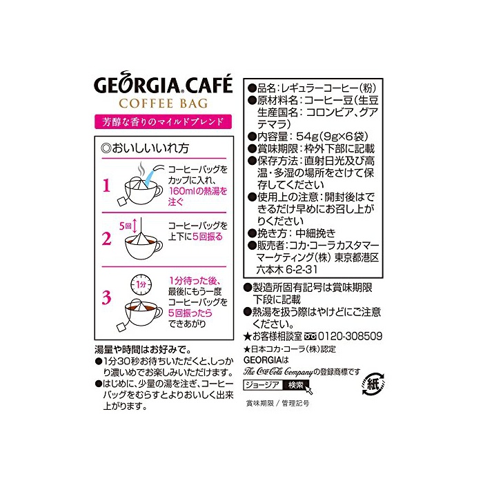 원본상품명: コカコ?ラ ジョ?ジア カフェ コ?ヒ?バッグ 芳醇な香りのマイルドブレンド 9g×60袋