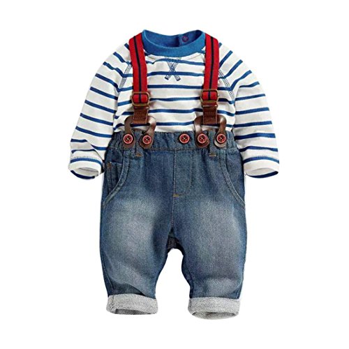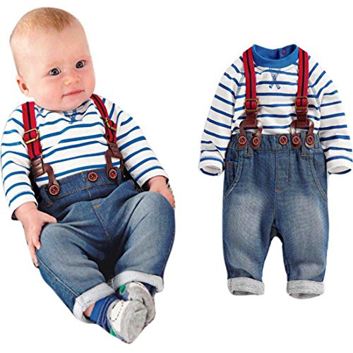 -. Title : HANYI Toddler Baby Boys Long Sleeve Striped T-Shirts + Jean Bib Pants Outfits 1 Set