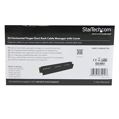 StarTech.com 2U Horizontal Finger Duct Rack Cable Management Panel with Cover CMDUCT2U Black