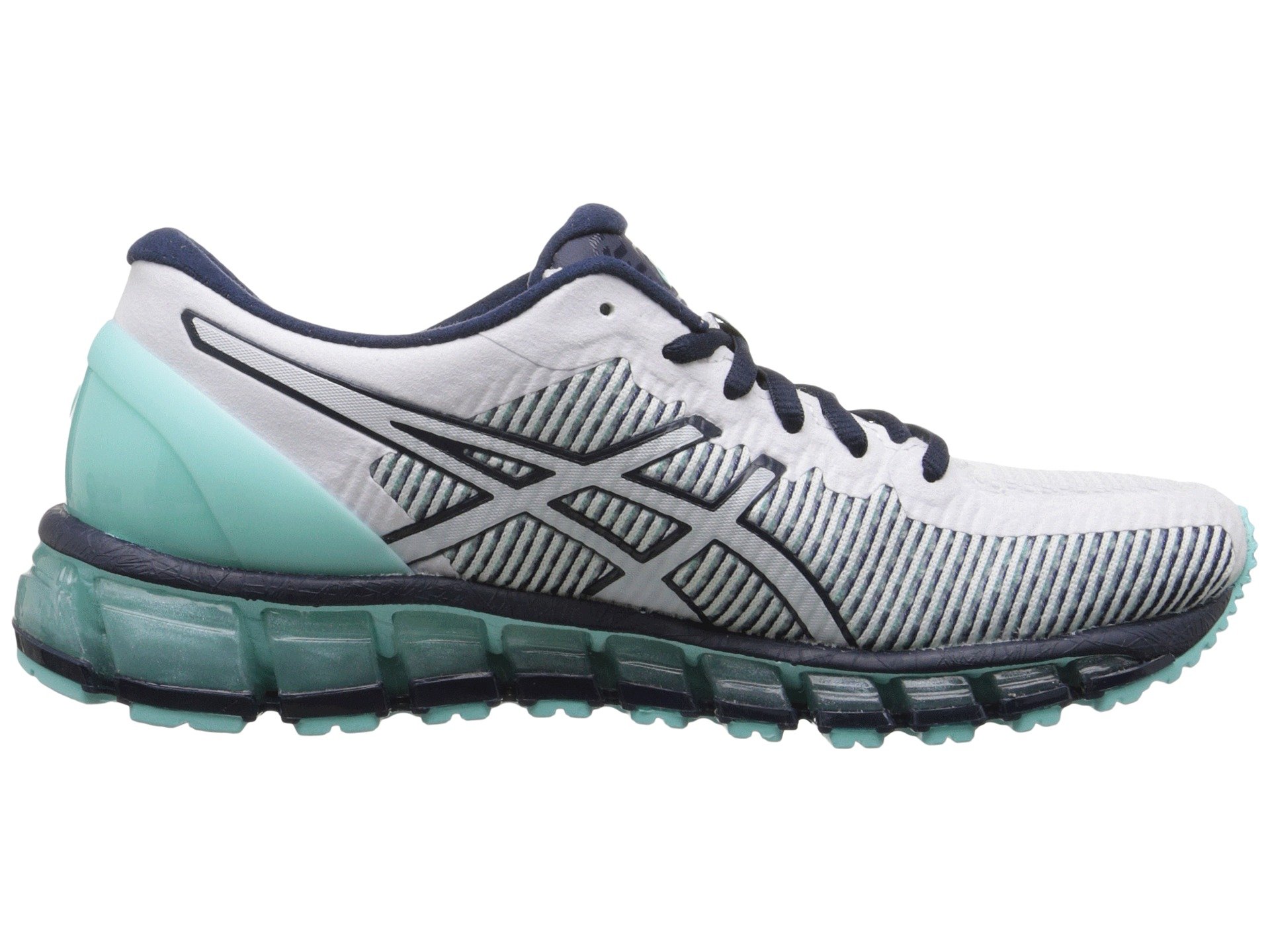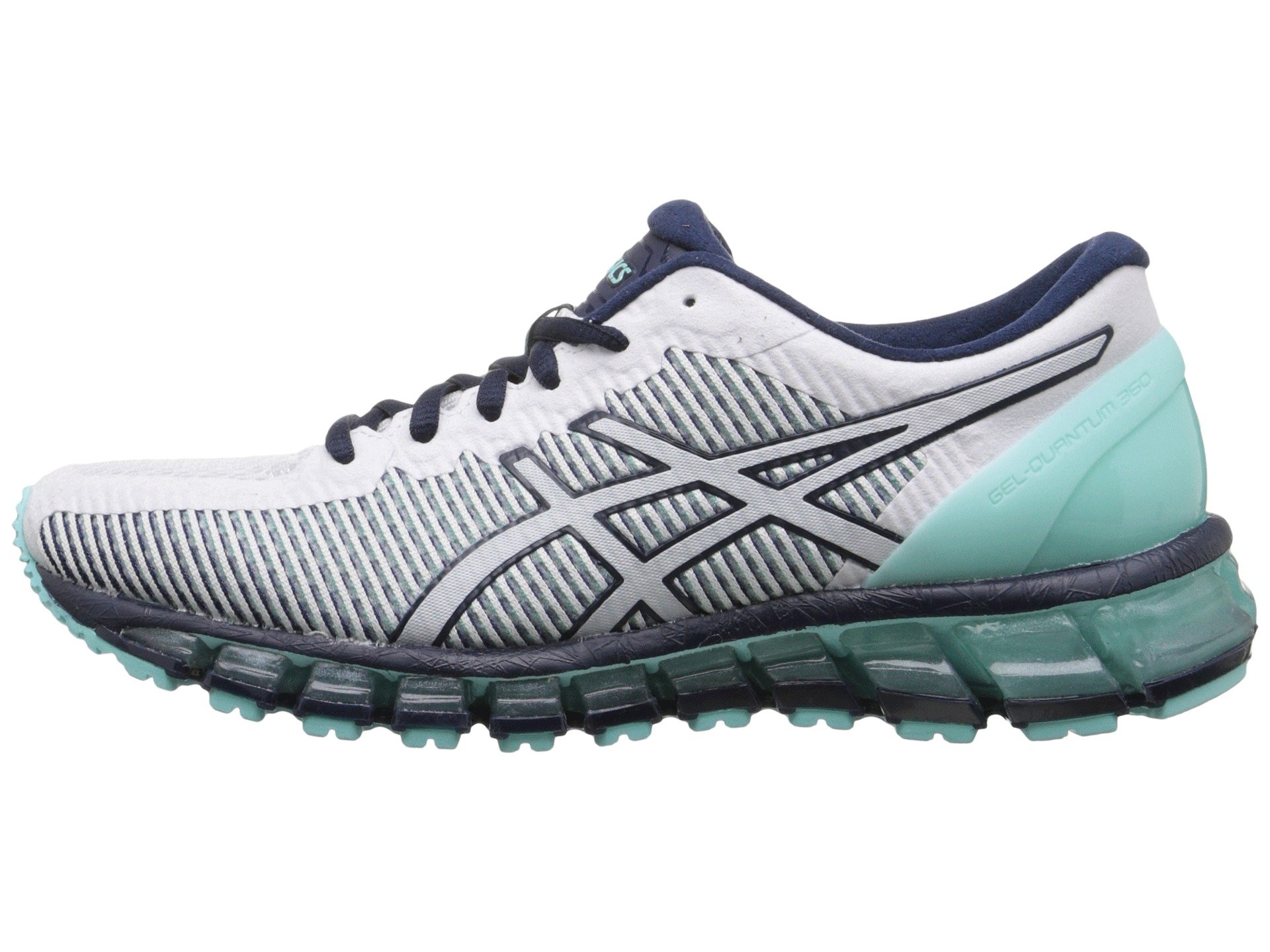 | Product Information SKU: #8949072Show your true colors as you pace down the street in the color-shifting brilliance and dynamic cushioning of the ASICS? Gel-Quantum 360 CM running shoe!Predecessor: None.Support Type: Neutral to underpronation (supination).Cushioning: Maximum cushioning. Surface: Road. Differential: 10 mm.Upper features chameleon color-changing mesh technology.FluidFit? combines multi-directional stretch mesh with stretch reinforcements that adapt to the foot for an enhanced, glove-like fit. Seamless construction in the forefoot helps eliminate the likelihood of irritation. Lace-up closure. Exoskeletal Heel Clutching System™ promotes a better fit and more secure feel. Plush tongue and collar.Smooth fabric lining. Removable ComforDry™ X-40 sockliner features high-rebound properties and exceptional moisture-managing properties. Solyte? midsole delivers featherweight cushioning and long-lasting durability. Forefoot and rearfoot GEL? cushioning breaks up impacting shock during the impact and toe-off phases, while allowing movement in multiple planes through the gait cycle. Heel/Toe: 21 mm/11 mm.Trusstic System™ technology reduces the overall weight of the shoe without compromising structural integrity. Rubber outsole. ComforDry™ lasting provides underfoot cushioning, without sacrificing breathability. Imported. Product measurements were taken using size 7.5, width B - Medium. Please note that measurements may vary by size.Weight of footwear is based on a single item, not a pair.Measurements: Weight: 11 oz |