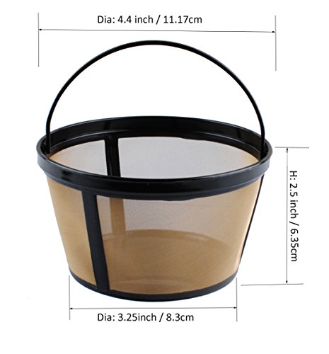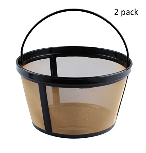 Podoy 2 Pack Reusable 10-12 Cup Coffee Filter Basket-Style Gold Tone Permanent Coffee Filter for Mr. Coffee GTF2-1