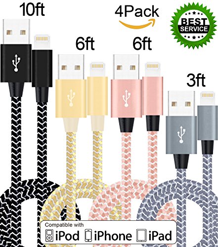 -. Title : Tecland 4Pack 3FT 6FT 6FT 10FT iPhone Nylon Braided Lightning Cables to USB Sync Charging for iPhone7/7Plus/ 6/ 6s/ Plus /5s /5Plus/ 5,iPad Pro,Air 2,iPad mini.(4pcs different colors)