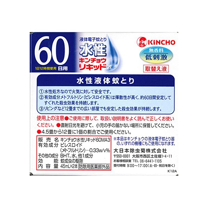 원본상품명: 水性キンチョウリキッド 無香料 取替え液 2本入 45mLX2本 (防除用??部外品)