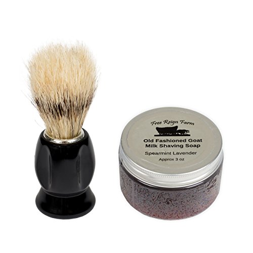 Free Reign Farm Spearmint & Lavender 3 Ounce Old Fashioned Goat Milk Shaving Soap with Brush