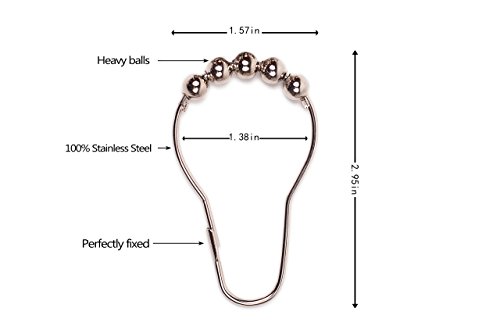 - ☀【Easy Gliding Roller Balls】Each ball rolls smoothly with no snagging or hassle. These shower curtain rings have been designed to roll effortlessly across the rod with virtually no effort at all. Even if shower curtain rod has a join in the middle of the rod!