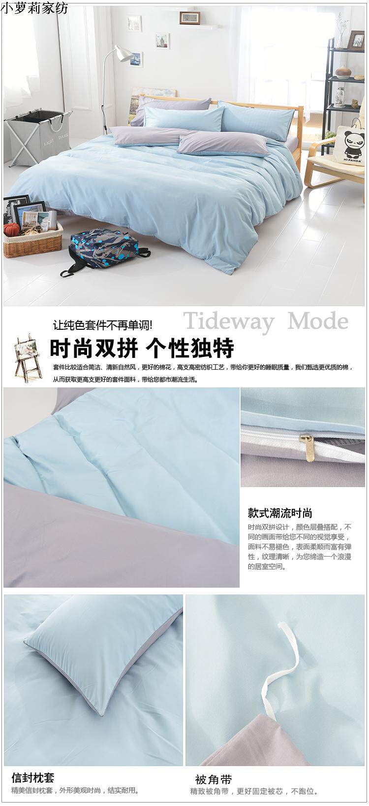 2.2 m Size: Quilt cover: 220 * 240 * 1 Bed sheets: 230 * 250 * 1 Pillowcase: 48 * 74 * 2