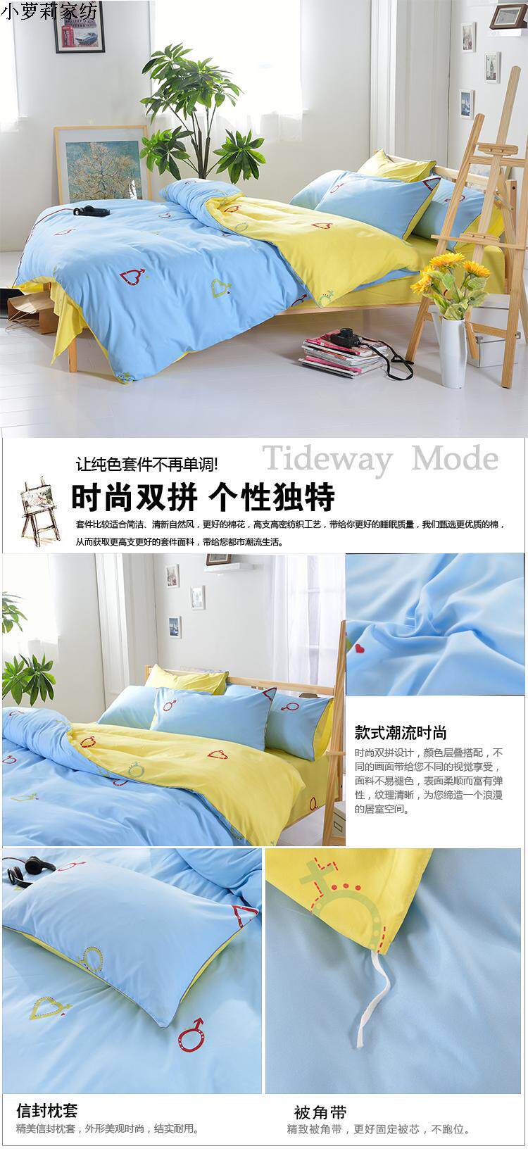 1.2 m Size: Quilt cover: 150 * 200 * 1 Bed sheets: 160 * 230 * 1 Pillowcase: 48 * 74 * 1