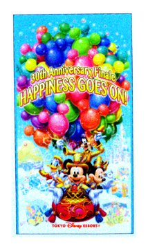 30주년 도쿄 디즈니 리조트 벌룬(balloon)에 오른 미키 미니 도날드무늬의 와이드바스 타올.2014년 1월14일 발매. 크기세로 약150cm,가로 약80cm.