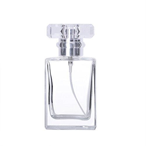 Enslz 30ML Portable Transparent Glass Perfume Empty Bottle Refillable Atomizer With Aluminum Cosmetic Case For Travel (Transparent)