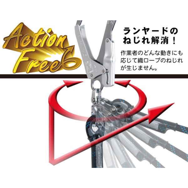 ●ランヤード連結部にアクションフリージョイントを備え、ねじれを防止します。