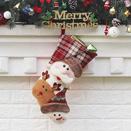 Christmas stockings gift bag 3 pcs set pure cotton plaid cloth cute toy stockings for christmas decorate [big size] (222644cm)