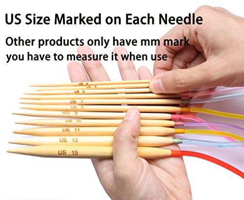 - ✿ The circular knitting kit includes 11 pairs - Size 3, Size 4, Size 5, Size 6, Size 7, Size 8, Size 9, Size 10, Size 11, Size 13, Size 15 (3.00 mm, 3.5 mm, 3.75 mm, 4.00 mm, 4.5 mm, 5.00 mm, 5.50 mm, 6.0 mm, 8.0 mm, 9.00 mm, 10.00 mm). Each needle tip is 5" long. The tube is 30" long. Total length is 40" long, which is good for bigger knit projects, like tank tops, scarfs, sweaters, blanket.