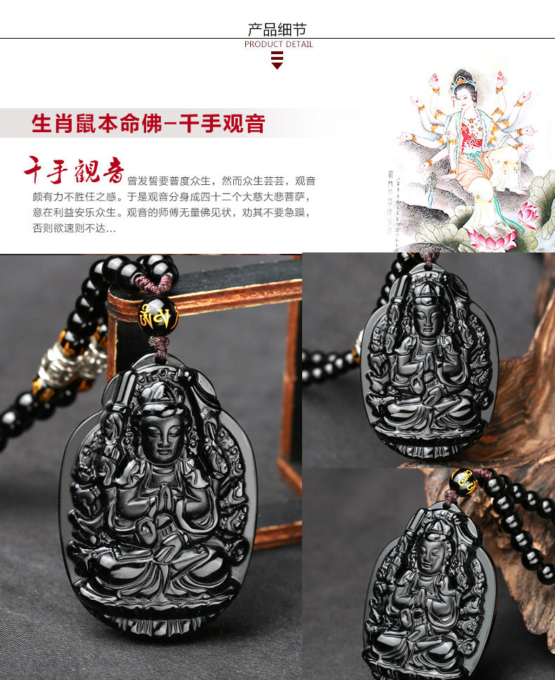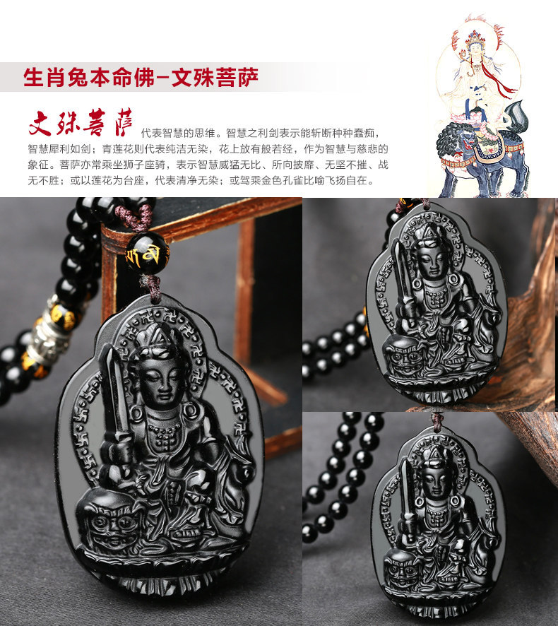 开光黑曜石吊坠男士项链大日如来普贤虚空藏观音菩萨本命佛守护神