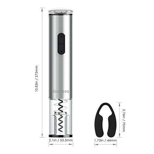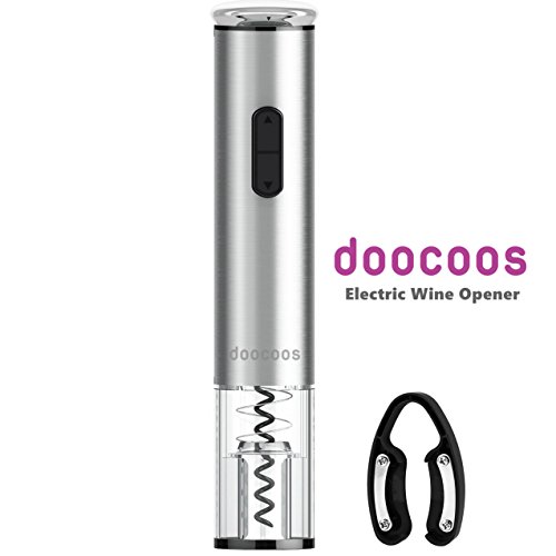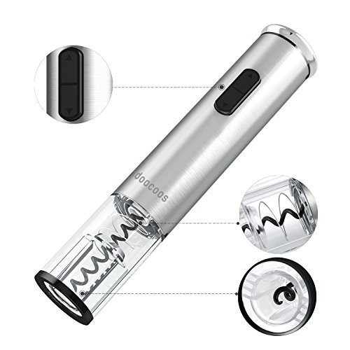 Electric Wine Opener, Doocoos Cordless Electric Wine Bottle Opener with Removable Free Foil Cutter (silver)