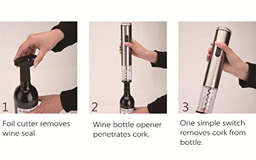 EASY & EFFICIENCY, different from the classic wine bottle opener, with this Automatic Wine Opener and foil cutter, pressing the two buttons, you can remove the cork in few seconds.