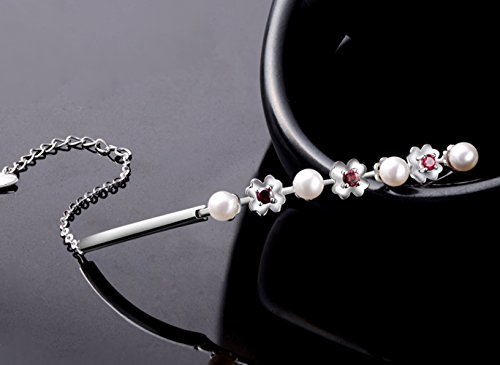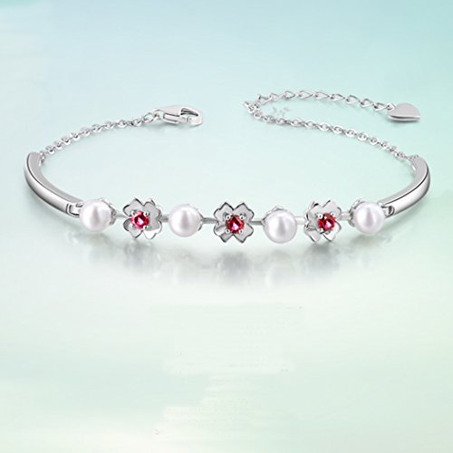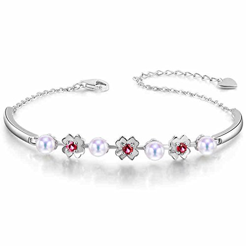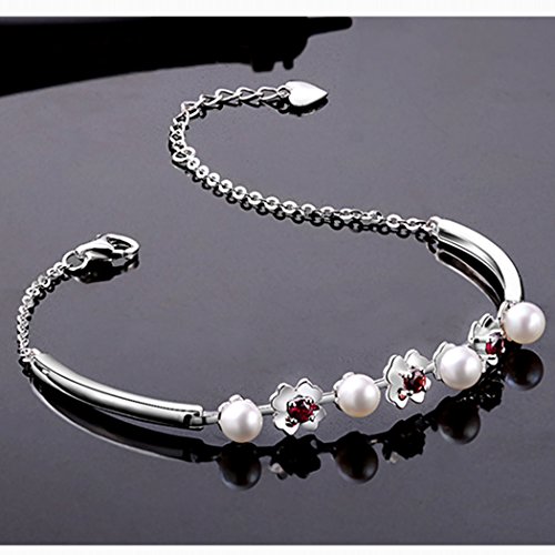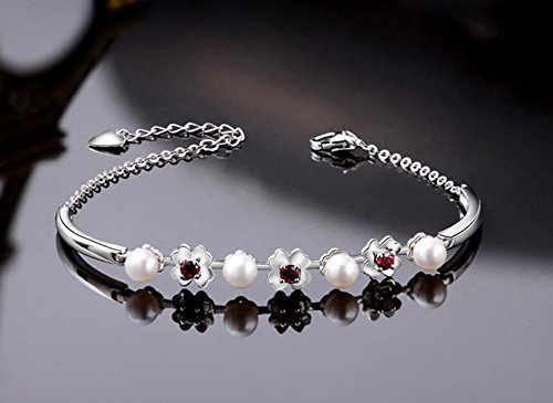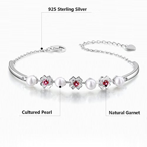 ♥HIGH-QUALITY♥ - The mental of bracelet : 925 Sterling Silver(18K rose gold plating surface). This bracelet is adorned with three garnets and four white pearls which make it look more attractive and brilliant. Bracelet is affixed with the highest quality sterling sliver "S925". GEMstone level: high quality high level, brightness range: bright, highly reflective luster. Pearl Level: Very high quality. Color: white. Shape:Round