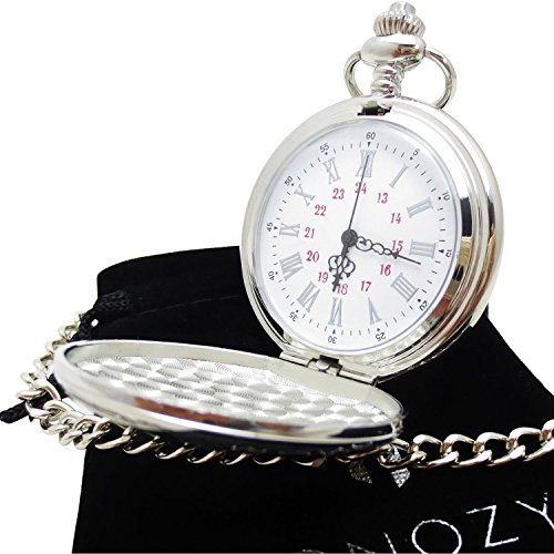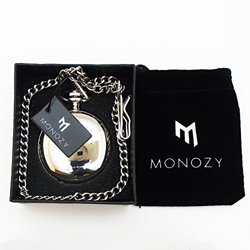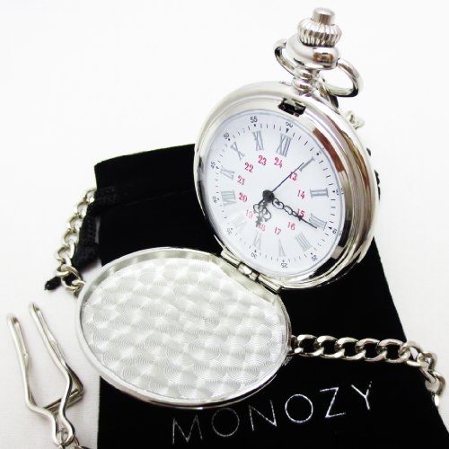 [모노G] MONOZY 앤틱 회중 시계경면 풀 헌터 심플 실버 인덱스 【수납대 화장품 상자세트】 레트로 회중 시계