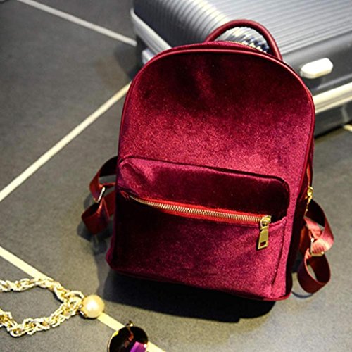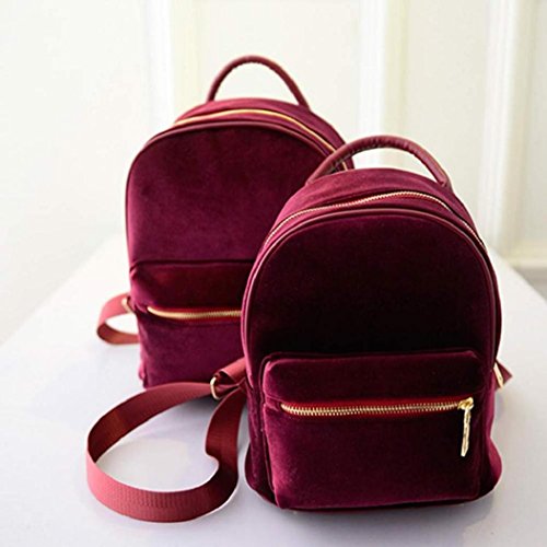 -. Title : VIASA Women Gold Velvet Small Backpack School Book Shoulder Bag(Red )