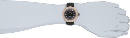 - Feature : Japanese quartz movement / Mineral crystal; stainless steel case; black leather strap with black nylon trim / Date function / Black dial with rose gold tone hands and hour markers; black second hand; luminous; unidirectional 18k rose gold ion-plated stainless steel bezel; black accent ring on crown / Water resistant to 660 feet (200 M): suitable for recreational scuba diving