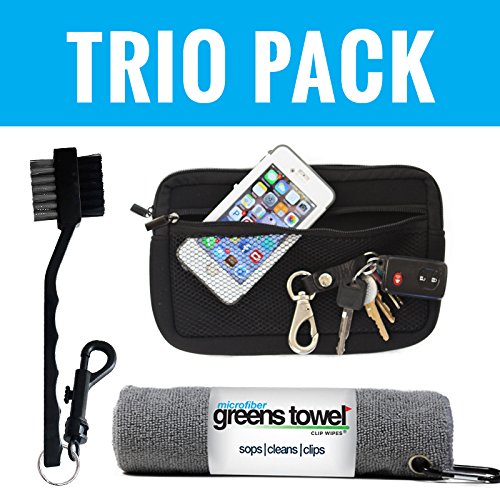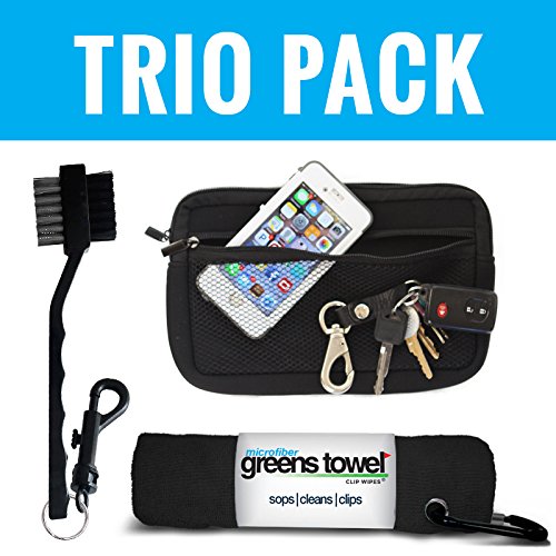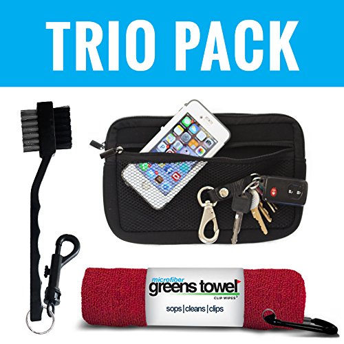Studio : Clip Wipes Publisher : Clip Wipes Binding : Misc. Product Description "The Trio Pack " is the perfect gift for every golfer and golf tournament. Ideal combination of a 10" x 7" Dura-Stretch Neoprene valuables pouch, 16" x 16" Microfiber Greens Towel and 2 Sided Golf Club Brush. The TRIO Pack is a 3 items in one gift that all golfers will use AND appreciate. Great for Tournament Gifts. 0