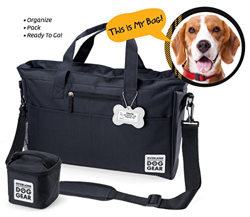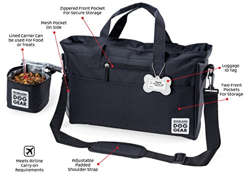 -. Feature : Overland Dog Gear provides you with an organized lage system that now makes it simple to travel with your dog for a day away or overnight / This bag meets airline carry-on requirements and even includes a lage ID tag / Includes a lined carrier that can hold up to 3 cups of food or treats / Bag also has an adjustable padded shoulder strap, two front pockets for storage, zippered front pocket, mesh pocket on the side, a back storage pocket, and a lage sleeve that fits over a suitcase pull up handle / This bag is perfect for all size dogs