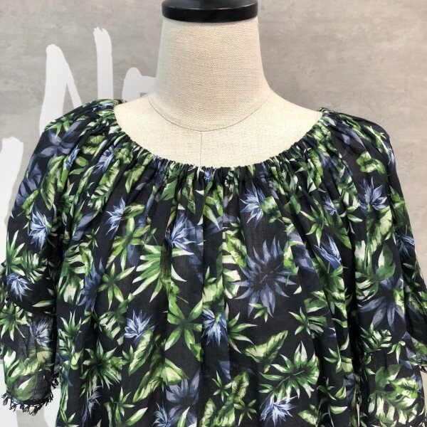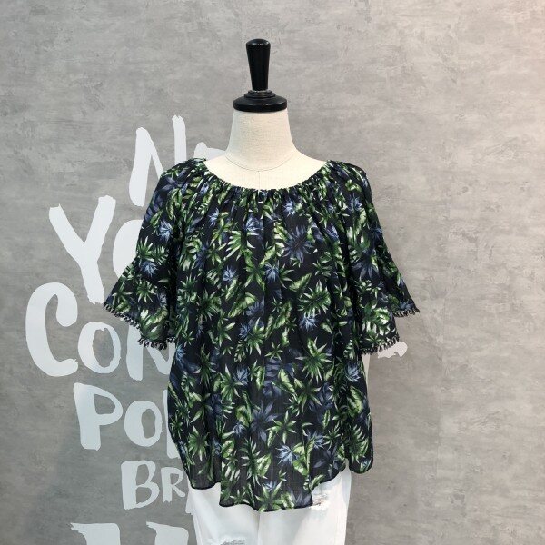 세련된 컬러감이 돋보이는 블라우스로 셔링이 포인트되어 발랄하고 여성스러운 느낌이 나고 오프숄더로도 코디가 가능한 아이템입니다