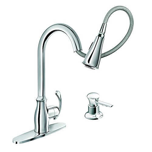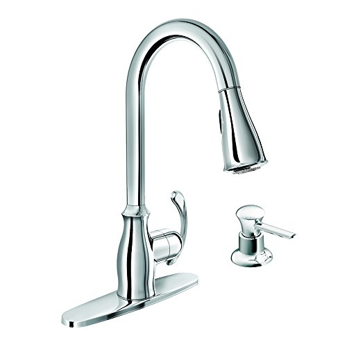 Moen 87910 Pullout Spray High-Arc Kitchen Faucet with Soap Dispenser from the Kipton Collection, Chrome