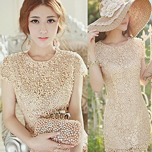 - Title : Women's Lace Floral Pearls Beads Cocktail Mini Dress Evening Party Gown Apricot Color (L US6, Apricot)