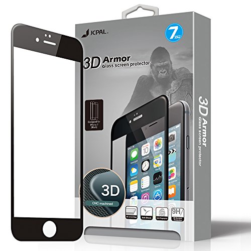 JCPal 3D Curved Edge Tempered Glass Screen Protector for Apple iPhone 7 (Black)