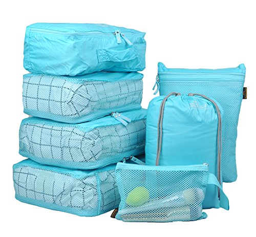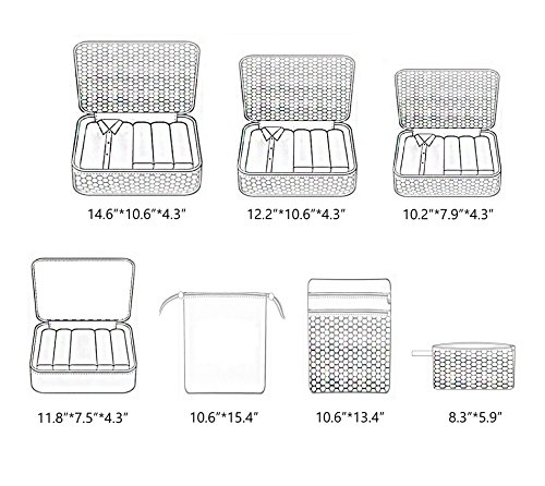 7 Set Travel Cubes,Mesh Durable Luggage Packing Cubes,Clothes Bags and Shoe Bag