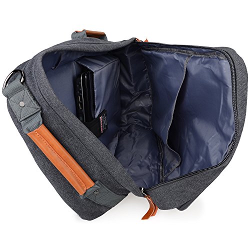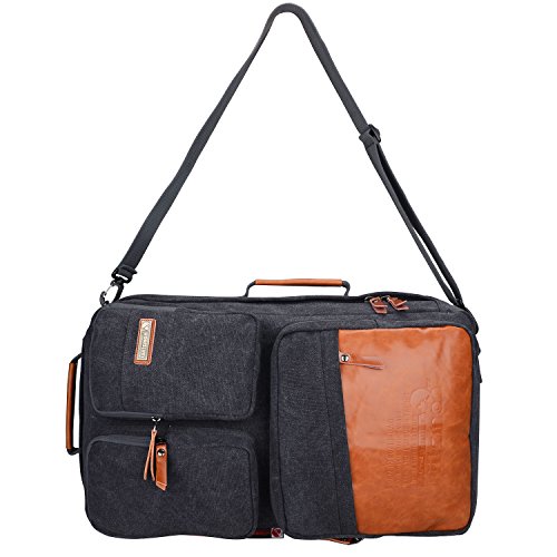 -. Feature : Featuring versatile carrying options,Size: 23 x 9.5 x 12.5 inches / 5 Front pockets,a side pocket, a main pocket with a laptop computer window inside;a inside big pocket can put wallet, cellphone,ect. / This is a removable shoulder strap inside the main pocket, you also carry this bag as a cross body bag, and The main pocket also have a side zipper for your easy packing once you cross pack this back / This bag also can use as a shoulder backpack.:The shoulder strap can be hiden if you don't like and can put into the secret pocket. / Material: Premium quality cotton canvas+ PU