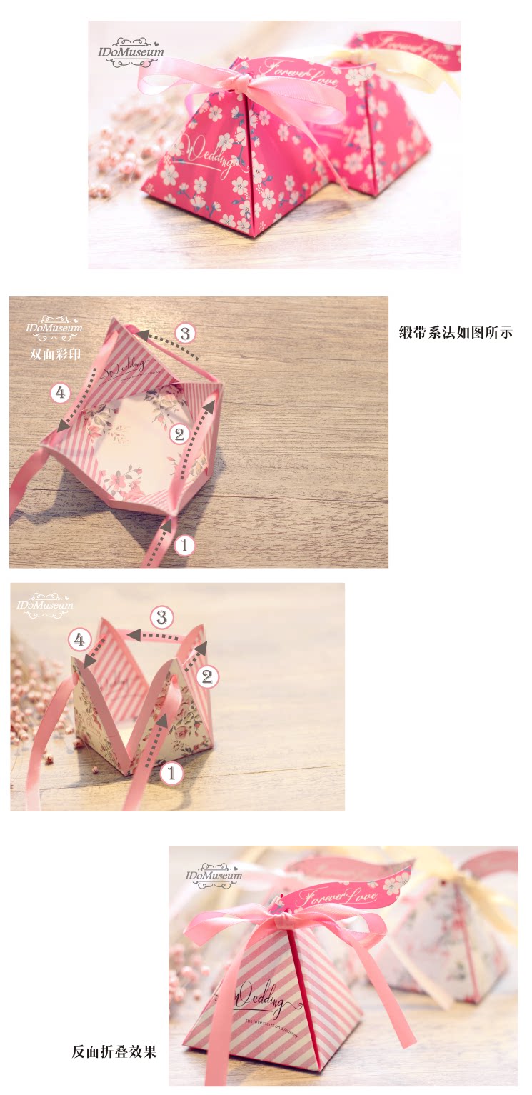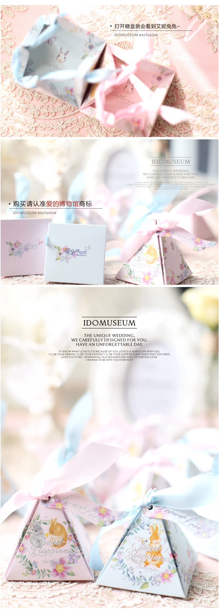 爱的博物馆の欧式结婚喜糖包装纸盒子个性婚礼喜糖盒创意金字塔盒