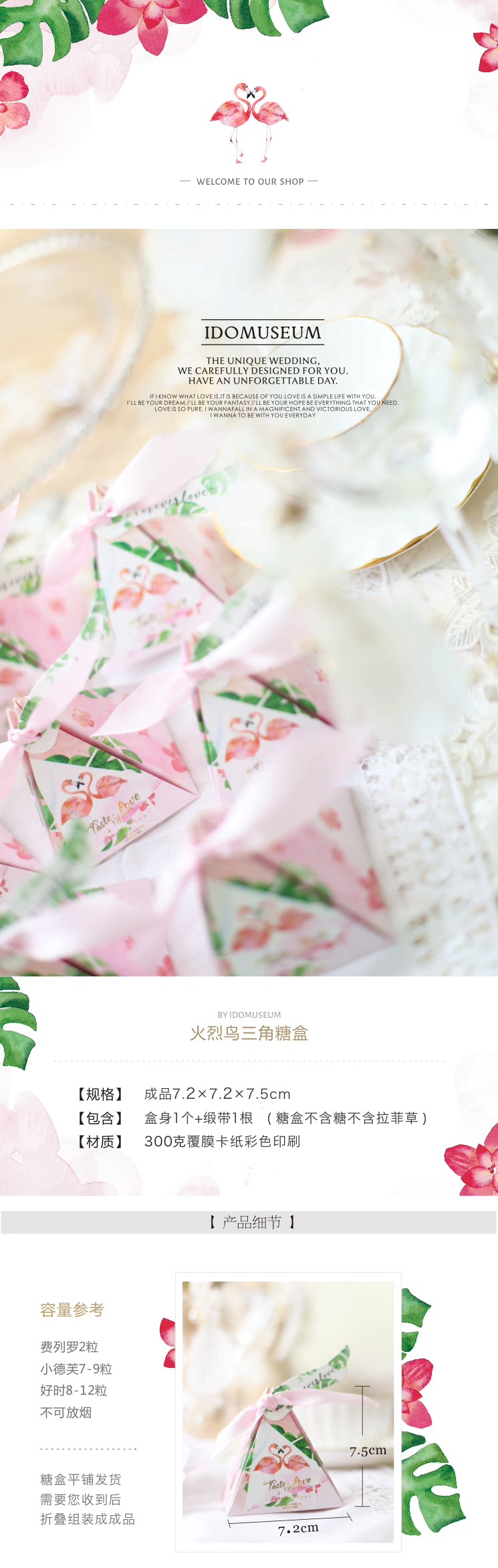 爱的博物馆の手绘火烈鸟 欧式婚礼喜糖盒子 创意结婚喜糖包装婚庆