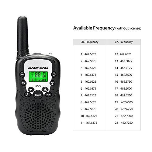 22 Channels (without license): Everyone (adults/ youth/ kids) can use Baofeng T-3 without license.