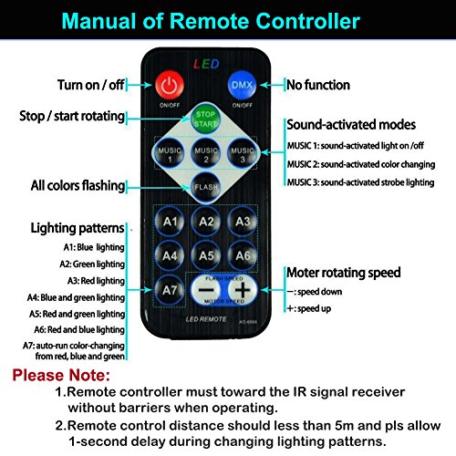 【Easy Remote Control】 This stage light comes with a handy remote control. You can free control the light, change to different modes and colors.