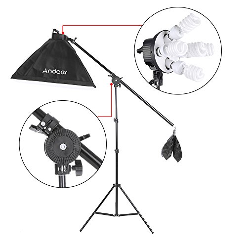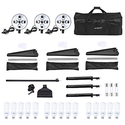 Andoer Studio Foto Video Softbox Beleuchtung Kit Fotoausrustung (15 * 45W Lampe / 3 * 5in1 Lampenfassung / 3 * Softbox / 3 * Licht-Standplatz / 1 * Cantilever Stick / 1 * Tragetasc