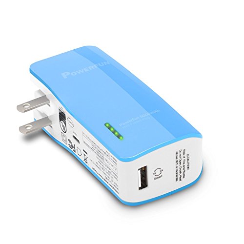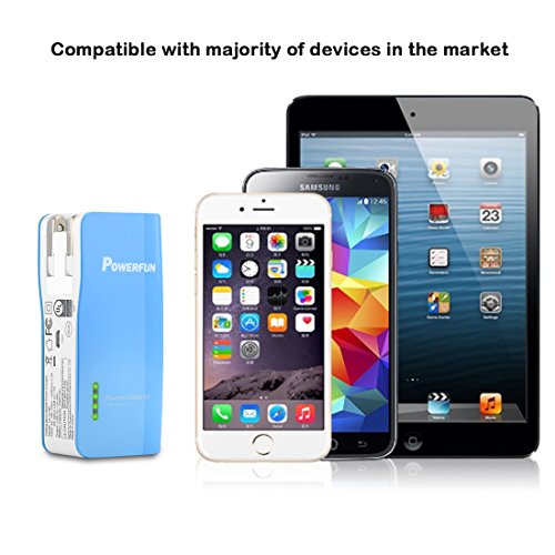 PISEN Power Bank 5000mAh Smart IC 1A/2A Cute Color Power Foldable AC Plug Portable Charger for iPhone 5/5S/5C/6/6 plus, iPad, LG, Samsung S7/S6/S5 iPod and More (Lake Blue)