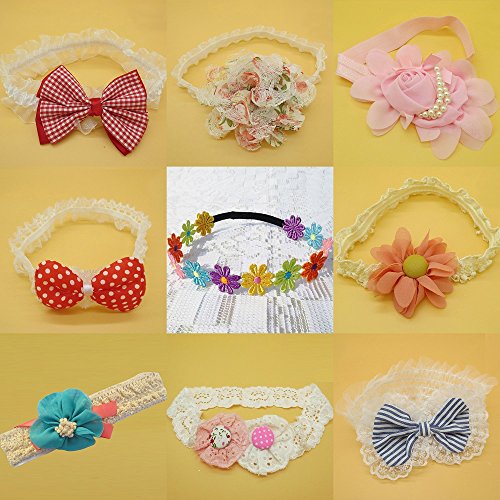 Band size: approx 14 inch girth,good elasticity Flower Size: Polygonal Flowers about 1.9 inch , Shabby flower about 2.4 inch