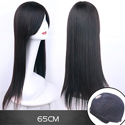 (Remeehi)/Styling Products/Hair Extensions Wigs/DIRECT FROM USA/Remeehi Long Straight Real Human Hair Clip in Toppers Machine Made Toupee Wig for Women (65cm Black)