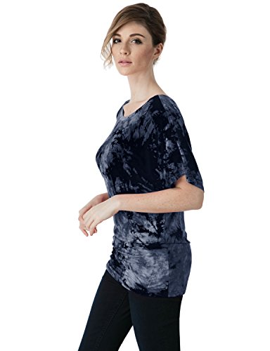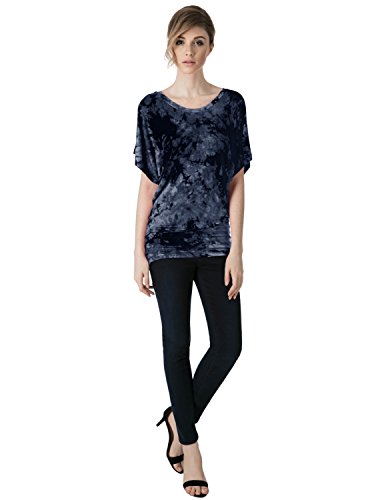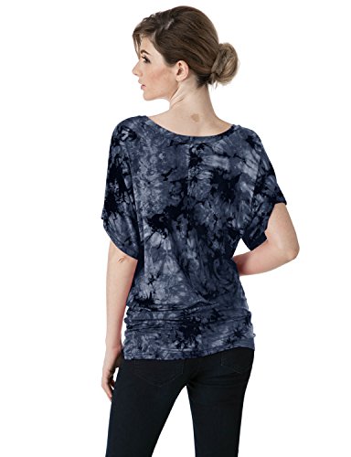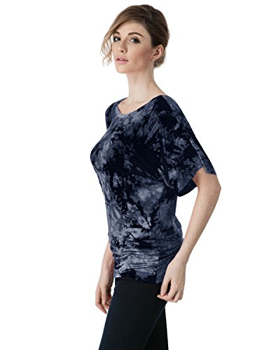 Elbon Boutique Women Short Sleeve Dolman Drape Top Loose T-Shirt ,Navy , Medium
