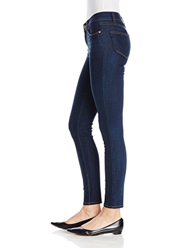 - Feature : Mid-rinse skinny jean with contrast stitching,light fading, and whiskering / Five-pocket styling / Zip fly and button