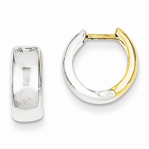 14k Two tone Hinged Hoop Huggie Earrings (10mm x 5mm)