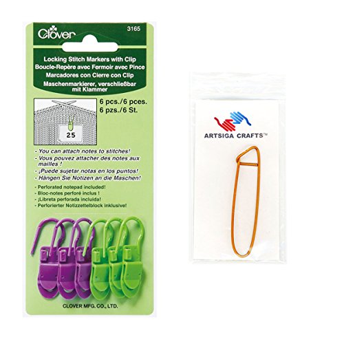 - Bundle includes 1 Clover Locking Stitch Markers W/Clips-6/Pkg with 1 Artsiga Crafts Stitch Holder 3165