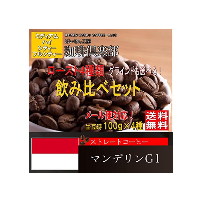 원본상품명: ばいせん工房 部 ロストみ比べのセット マンデリン 100g×4種 計400g コヒ
