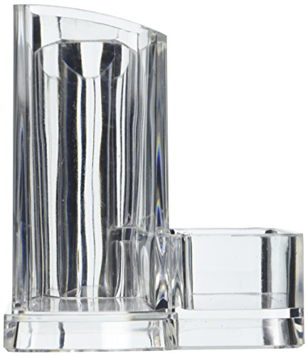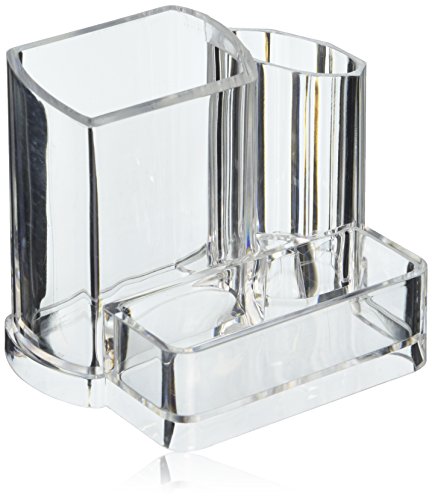 PUEEN Acrylic Makeup Brush and Cosmetic Holder Organizer with 3 Compartments