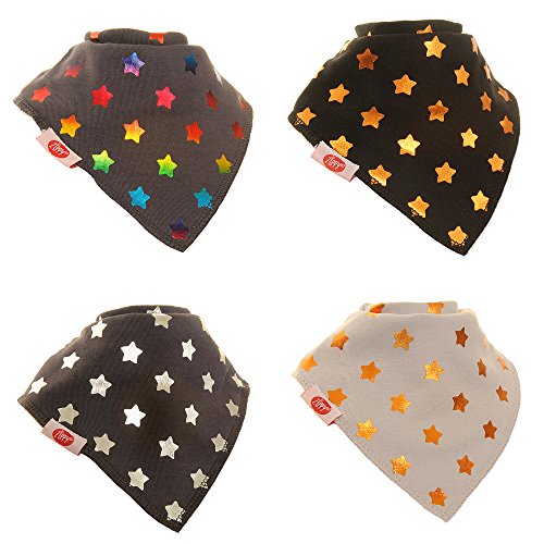 -. Title : Baby Bandana Drool Bibs, Super Absorbent For Drooling And Teething Babies, Fits Newborn To Toddler, Award Winning, 4 Pack (Unisex Metallic Glitter Stars) By Zippy.