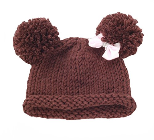 BestKnit Baby Girls Pompom Hat Props Crochet Knitted Pom Pom Hat Bow beanie Medium Brown