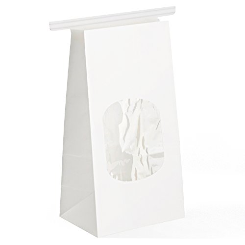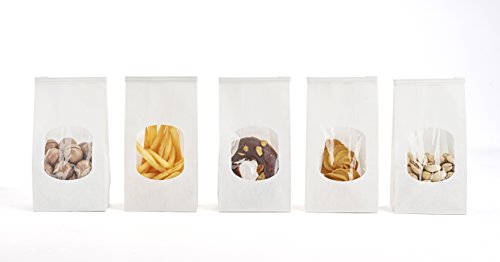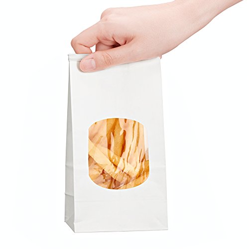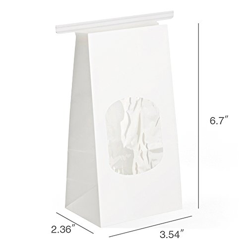 Halulu Bakery Bags Paper Treat Bags Resealable Kraft Paper Bags Cookies Popcorn Bags with Windows, 3.54x2.36x6.7", Pack of 25 (White)