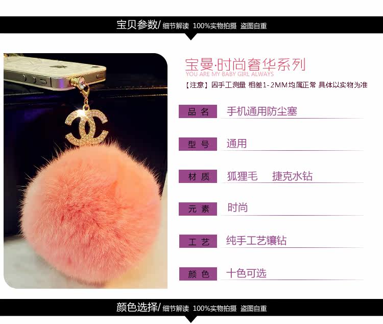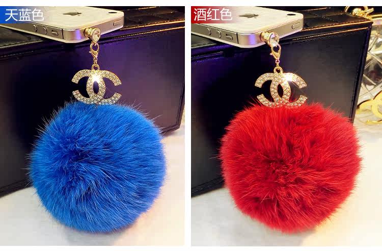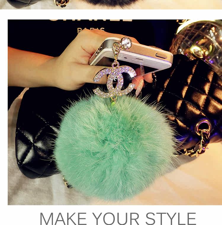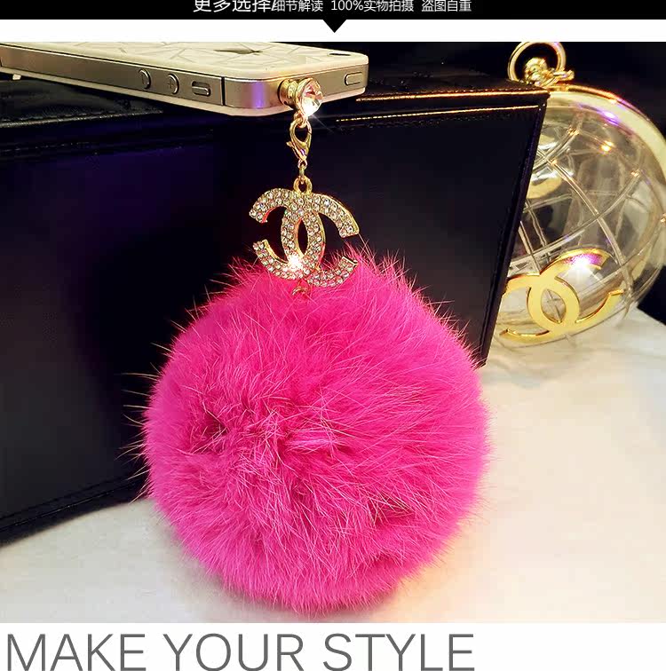 Korea Rabbit Flur Ball Strap - Anti Dust Plug 韩国兔毛绒球吊坠手机防尘塞 Rabbit fur ball Strap for iPhone and all mobiles including anti dust plug 100% Real fur accessories Made in Korea